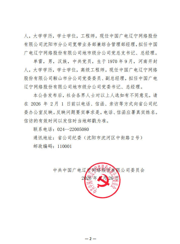 关于公司拟任领导职务人选的公示